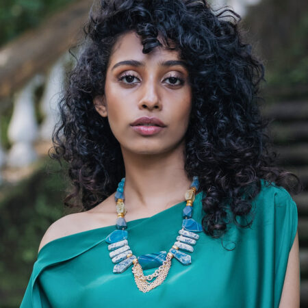 Add a splash of colour and fun to your day look with this unique, tropical, beach style statement necklace. It’s a one of a kind beauty that is sure to make you stand out from the crowd owing to its unusual design, vibrant colours and interesting play of materials!