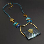 Ethnic/tribal style statement necklace with agate stone in shades of blue.